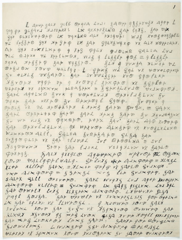 One way to solve an encrypted message, if we know its language, is to find a different plaintext of the same language long enough to fill one sheet or so, and then we count the occurrences of each letter.