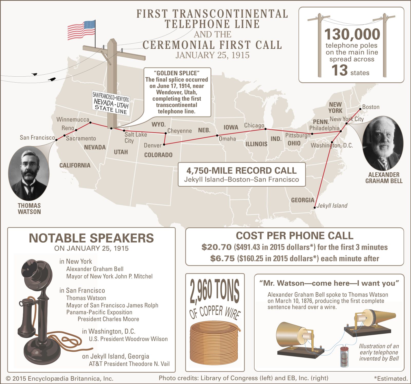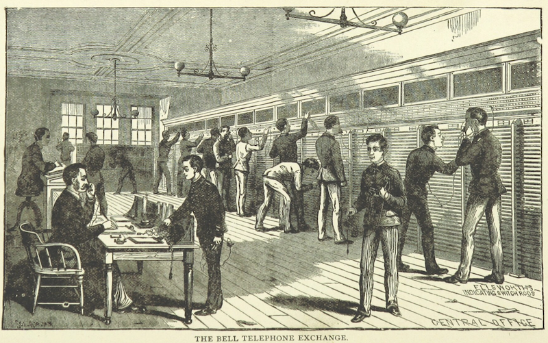 In a similar manner, it is conceivable that cables of telephone wires could be laid underground, or suspended overhead, communicating by branch wires with private dwellings, country houses, shops, manufactories... uniting them through the main cable with a central office where the wires could be connected as desired, establishing direct communication between any two places... I believe, in the future, wires will unite the head offices of the Telephone Company in different cities, and a man ...may communicate by word of mouth with another in a distant place.
